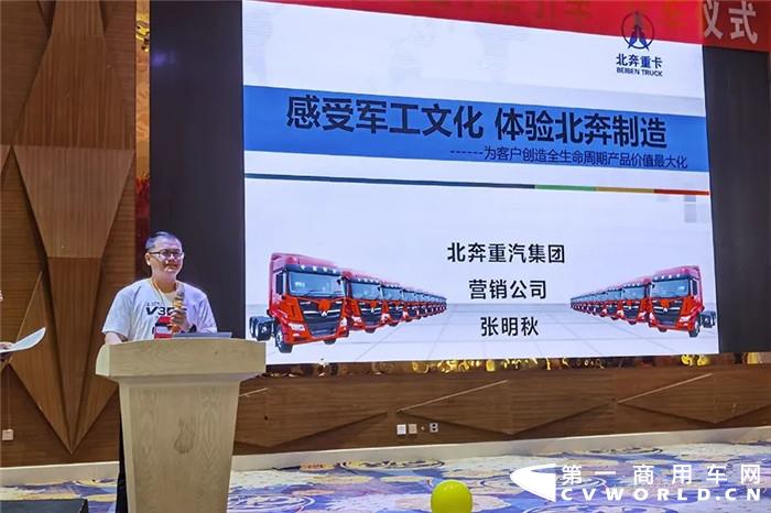 随后,张明秋全面介绍了北奔企业文化及发展历程,并对V3ET底盘结构及终身可托付质保进行详细讲解。
