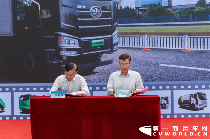 一汽解放汽车销售有限公司副总经理胡晓冬与北京市政路桥建材集团党委书记、董事长刘振成签署战略合作协议,标志着双方长期合作、联合共赢正式启程。