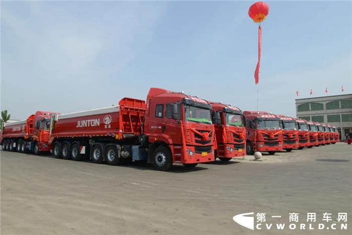 据了解,平推半挂自卸车将有效解决后翻半挂车和侧翻半挂车对作业场地平整度及高度要求较高,装卸货物时效率低、安全性差等产品痛点,将给客户带来更加安全、可靠、高效、便捷的体验。