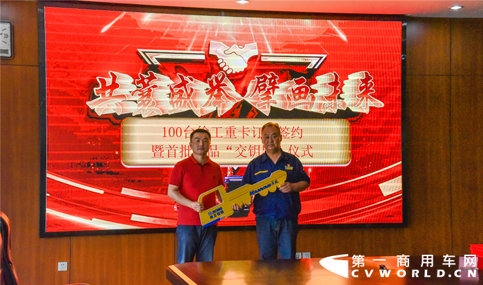 近日,徐工重卡、徐工智联与浙江一供应链管理有限公司共同举办“共襄盛举·擘画未来——100辆重卡订单的签约仪式暨首批产品‘交钥匙’仪式”。徐工集团副总经理、汽车事业部总经理罗东海,徐工智联总经理、党委书记蒋大为,浙江供应链管理有限公司马总以及三方代表共同出席见证了本次活动。