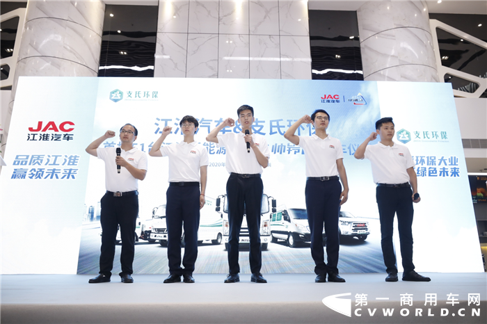 现场,江淮新能源商用车公司售后服务团队郑重宣誓:“敬客经营,倾听客户声音;主动服务,与支氏同行;专业诚信,五星服务永不停”。