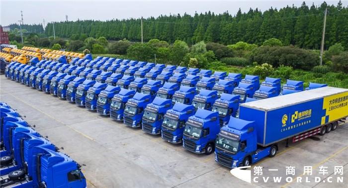6月24日,沃尔沃卡车与德邦快递在上海举办了新车交接仪式。现场新车呈矩阵排列,气势恢宏。德邦快递此次共计采购了450辆沃尔沃FM系列牵引车(含500多个轻量化铝柜),数量共计450辆,费用约3.5亿,满载货量可达27吨。相比普通货车,运力提升12%,时效提升10%。