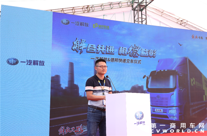 2020年一汽解放逆势上扬,上半年整车销量领跑行业。其中要客开发不断突破,与德邦等行业TOP客户达成深度合作。一汽解放汽车销售有限公司总经理助理韩光礼先生在致辞中表示,解放取得辉煌成绩的背后,得益于全体解放人的共同努力,更离不开像德邦这样重要客户的支持。