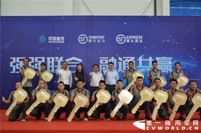 强强联合,融通共赢。中国重汽HOWO轻卡与顺丰运力、顺丰速运联合举行顺丰集团济南地区交车仪式。顺丰速运集团助理COO、顺丰快运CFO、顺丰运力平台负责人郭蕾、顺丰速运济南区总经理郭隽、重汽(济南)轻卡有限公司董事长叶茂、副总经理房泽强、大客户部经理李博等领导参加交车仪式。