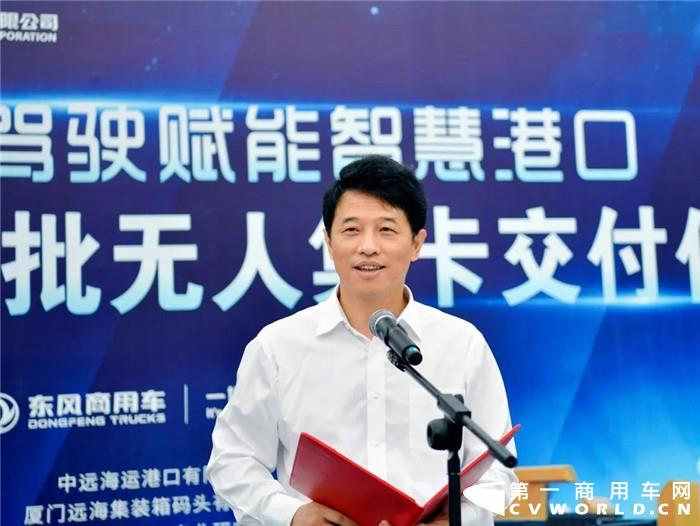 东风商用车有限公司总经理、党委书记王强;中远海运港口有限公司董事会主席冯波鸣,厦门远海集装箱码头有限公司总经理陈毅鹏,武汉中远海运港口码头有限公司总经理邱金成;中国移动(上海)产业研究院智慧交通一部总经理蒋鑫;华为智能汽车解决方案部销售总监孟令军等出席仪式。