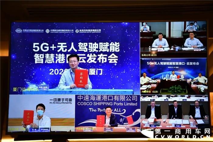 在5月11日“5G+无人驾驶赋能智慧港口云发布会”上,东风商用车无人驾驶港口集装箱卡车在厦门港口实际演示了5G+无人集卡全流程作业,展示了5G全场景业务。