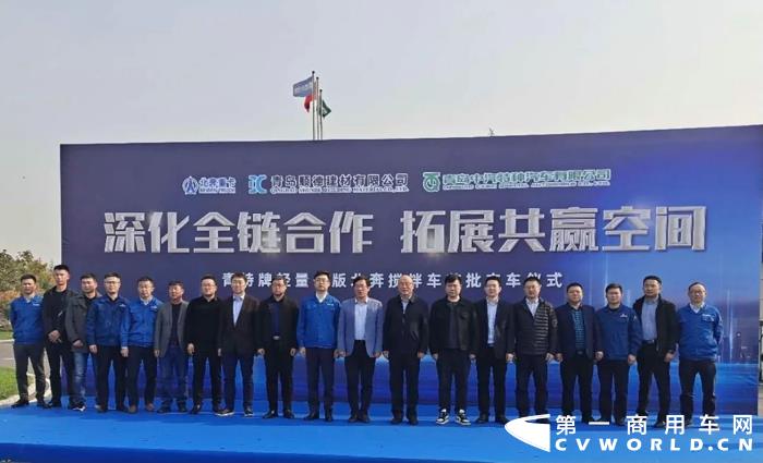 北奔重汽总经理、党委副书记郭平晓,营销公司副总经理赵杰,技术中心副总设计师王伟光,青特集团总裁纪建奕、副总裁王令民,青岛顺德建材有限公司总经理刘晓林、副总经理信荣星,以及营销公司专用车计划部、鲁豫大区、山东分公司、北奔部分经销商代表等,共计50余人参加此次活动。