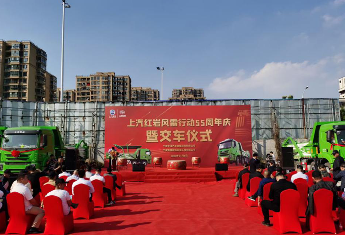 当前,我国正逐步形成以国内大循环为主体、国内国际双循环相互促进的新发展格局,为此,我国民族重卡品牌上汽依维柯红岩商用车有限公司(以下简称“上汽红岩”)充分发挥自身优势,积极挖掘内需和外在市场的潜力,不断在国内外掀起“交车热潮”。近日,上汽红岩风雷行动55周年庆活动在浙江宁波实力圈粉,430余名客户齐聚现场,近40家大型企业当场签订新型智能环保渣土车意向订单,再次掀起一股“签约热潮”。同时,当天还有近百辆新型智能环保渣土车现场交付客户。