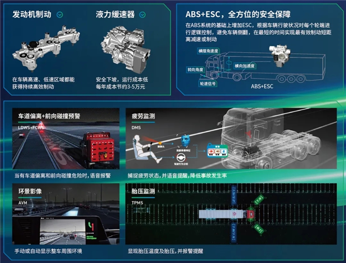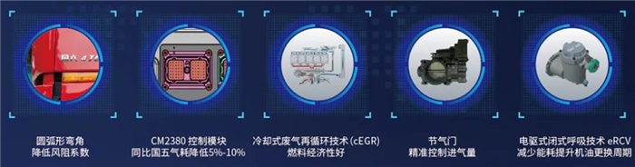 总成匹配进一步优化。变速箱效率提高1%,驱动桥效率提高2.3%,等速油耗降低3%。与国五发动机气耗水平相当,一年可额外节省燃料成本3万元以上。