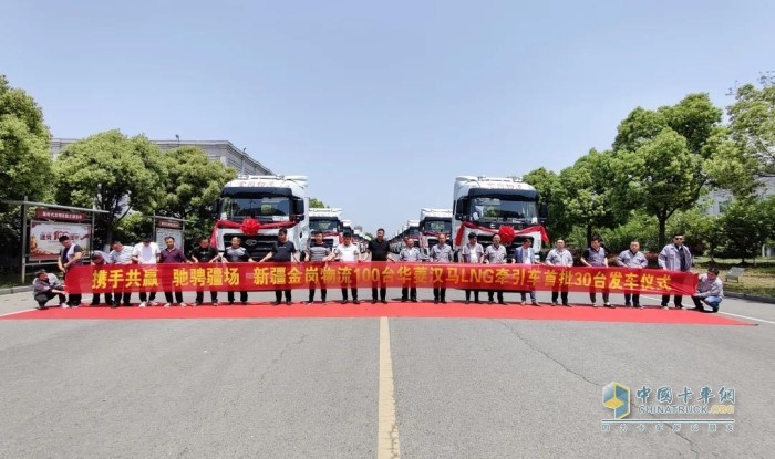 新疆金岗物流百台华菱汉马H9 LNG牵引车首批30台发车仪式
