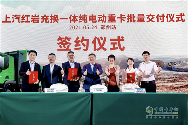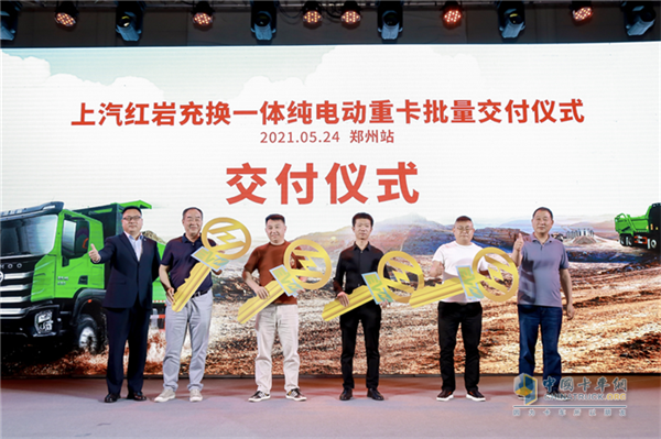 2021年5月24日,上汽红岩充换一体纯电动重卡批量交付仪式在河南郑州盛大举行。这是继上海港口、武安砂石料、山西煤炭、唐山钢铁等场景投运后,上汽红岩新能源重卡在城市渣土细分市场的又一次落地。上汽红岩、国电投、国电投骏玖、国电投(河南)新动力等相关领导,经销商、客户代表以及行业媒体,共同出席本次活动,见证这一盛会的圆满成功。