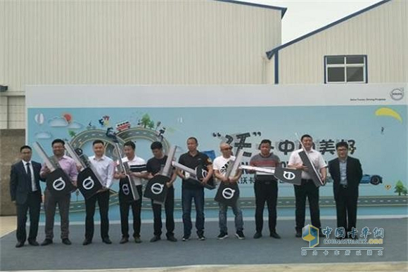 在有趣的亲子互动游戏之外,沃尔沃卡车交车仪式也在同步进行中。活动现场,沃尔沃卡车中国北区总经理李维光为近期购置了80辆沃尔沃卡车的北京捷奥通、北京捷顺行等8个公司的代表启动了交车仪式。