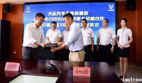 大运汽车与苏州高迈勠力同心积极开发纯电重卡市场:继2017年实现1500万销售业绩后,2018年3月份苏州高迈再次与大运汽车签约7000万订单,为满足日益增长的市场需求,2018年6月4日苏州高迈与大运汽车举办签约仪式,再次追加200台订单。