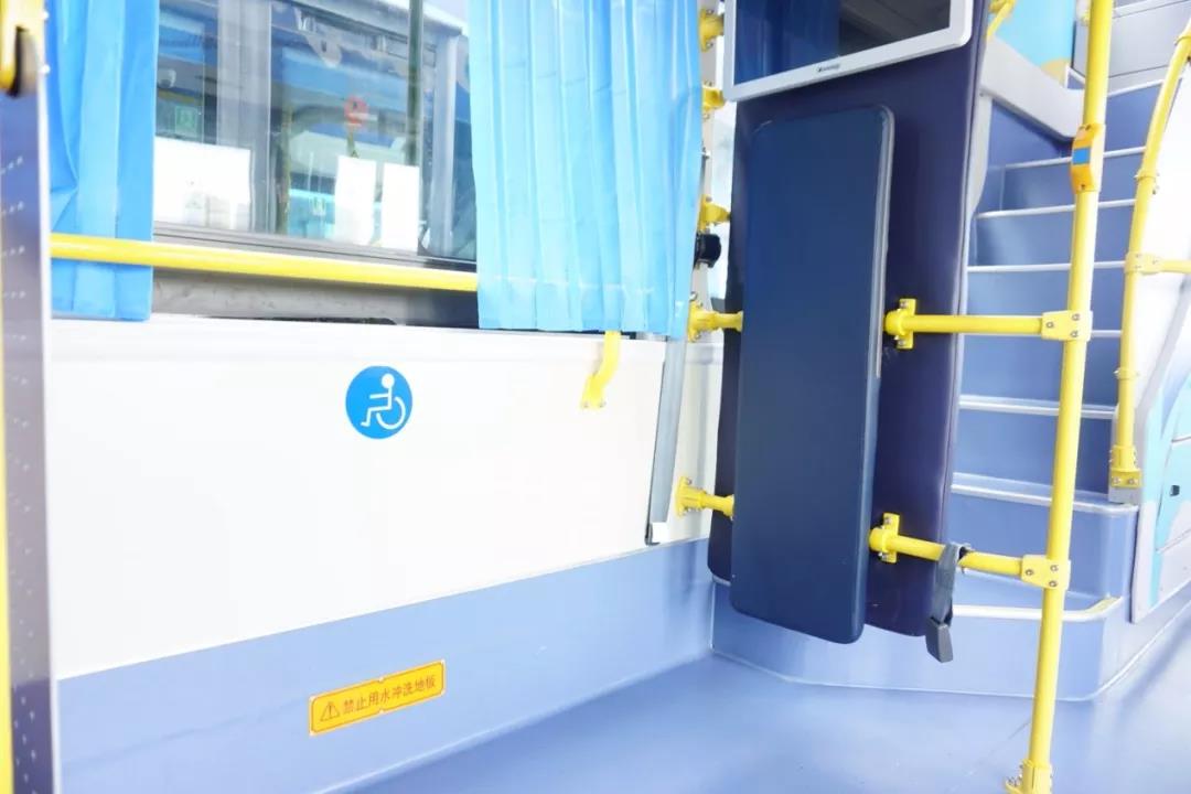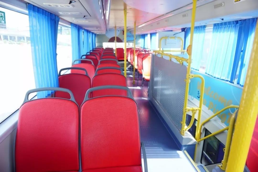 如此高颜值的旅游观光巴士,除了“双层”这一特殊身份外,更独具人文关怀。在座椅方面,双层巴士皆采用皮质座椅,提高了乘坐的舒适性,并配备轮椅导板,给特殊的游客提供便利。整车匹配后置式超大制冷量空调,并增加驾驶区独立小空调,即便炎炎烈日,也能够满足上下层乘客及司机对空调的需求。