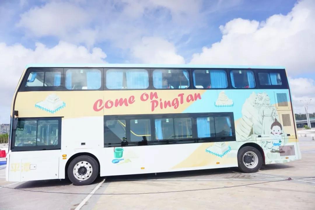据了解,6台纯电动双层观光巴士,车身分别绘有“海”、“风”、“沙”、“情”、“麒”、“石”6个主题,将平潭自然元素、人文情怀与纯电动双层大巴有机融合,呈现出一个特色鲜明、亲切友好、生态环保的平潭形象。