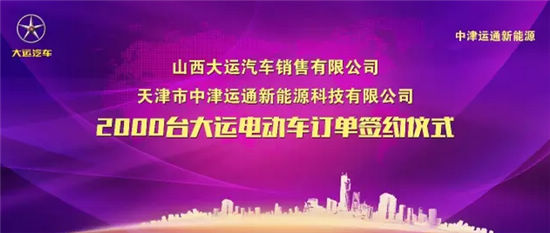 天津市中津运通新能源科技有限公司通过对天津地区物流市场的深入调研和分析,并与山西大运汽车多次沟通和磋商,于7月5日双方最终达成2000辆纯电动物流车的合作协议。从此,大运牌纯电动物流车将在天津地区得以推广和应用,为建设美好天津贡献新的动力。