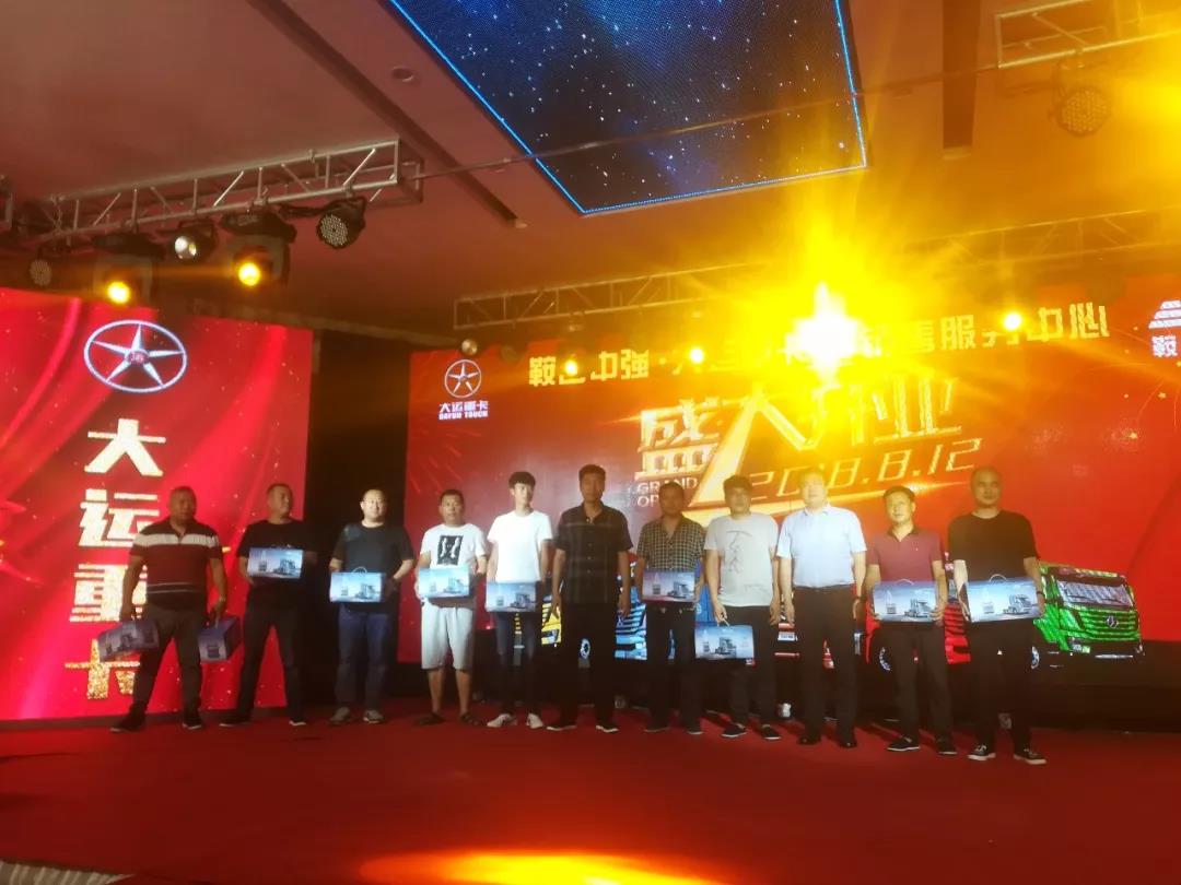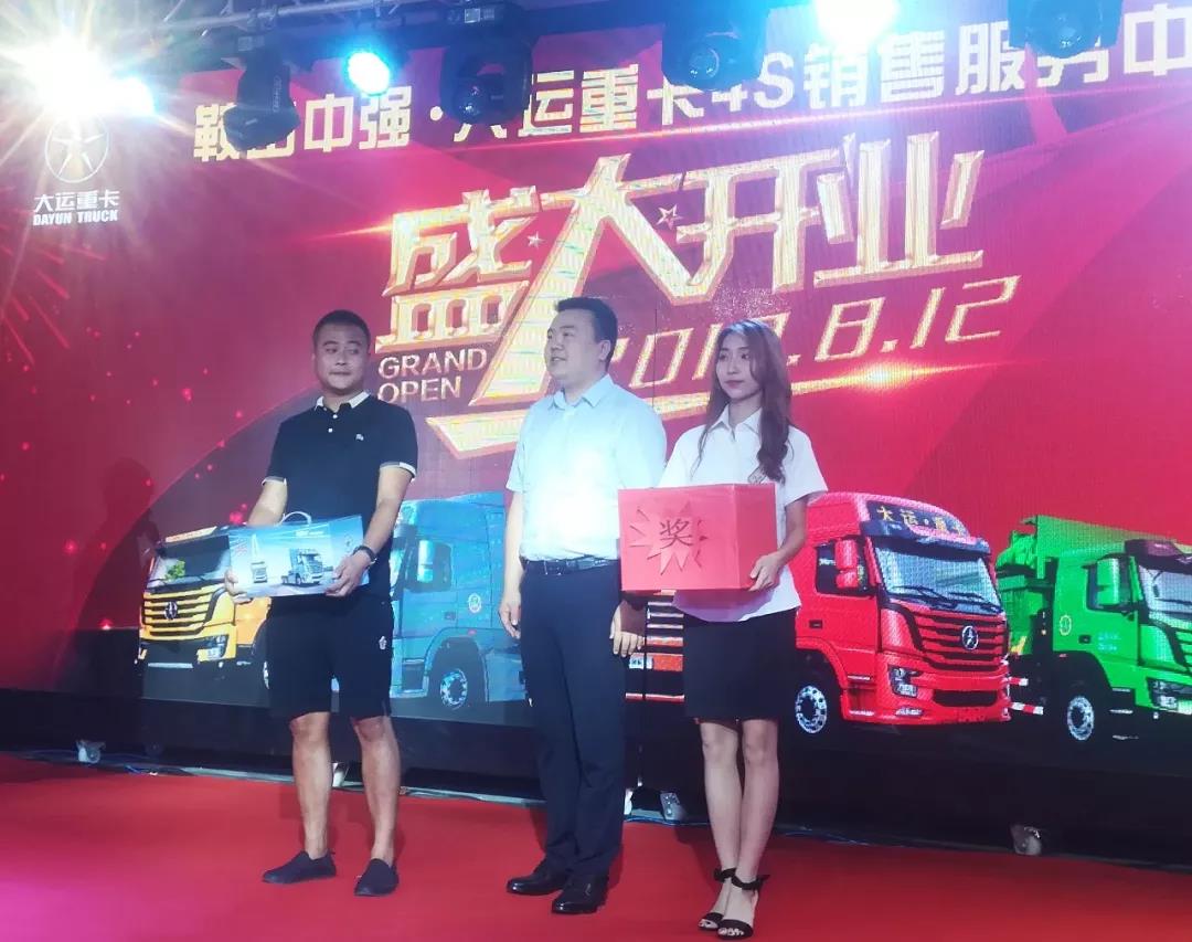 紧接着,鞍山中强汪总上台致辞。汪总对会场嘉宾及用户表示了热烈的欢迎和由衷的感谢,高度赞扬了大运重卡的可靠品质和优质服务,对大运重卡未来发展和广阔前景信心十足。同时,介绍了中强汽贸的企业规模和业务板块,在“中通天下、强国富民”的经营理念和“服务客户、便利客户”的经营宗旨的指引下,将为广大司机朋友提供最优质的服务、最周到的物流解决方案。最后汪总再次感谢各位的光临,祝大家买大运、行大运、交好运!