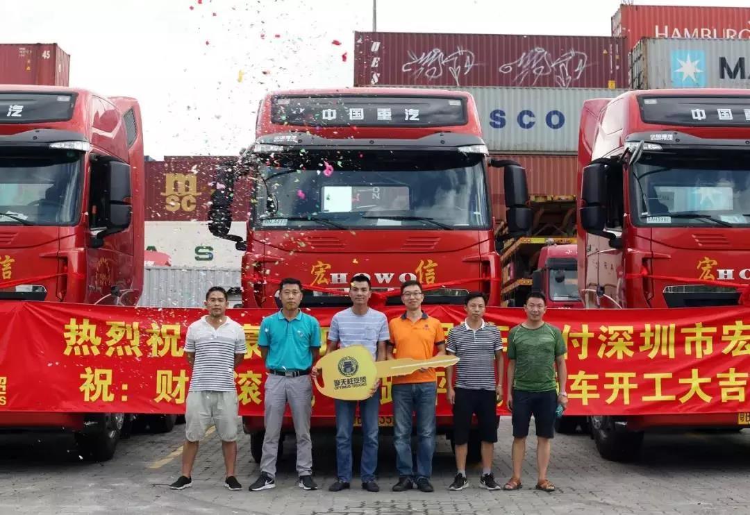 8月13日,销售部经销商擎天柱汽贸还举办了豪沃T7H交付深圳市宏信物流有限公司的交车仪式,此次豪沃T7H批量交付,将为运输旺季提供坚实的装备保障。
