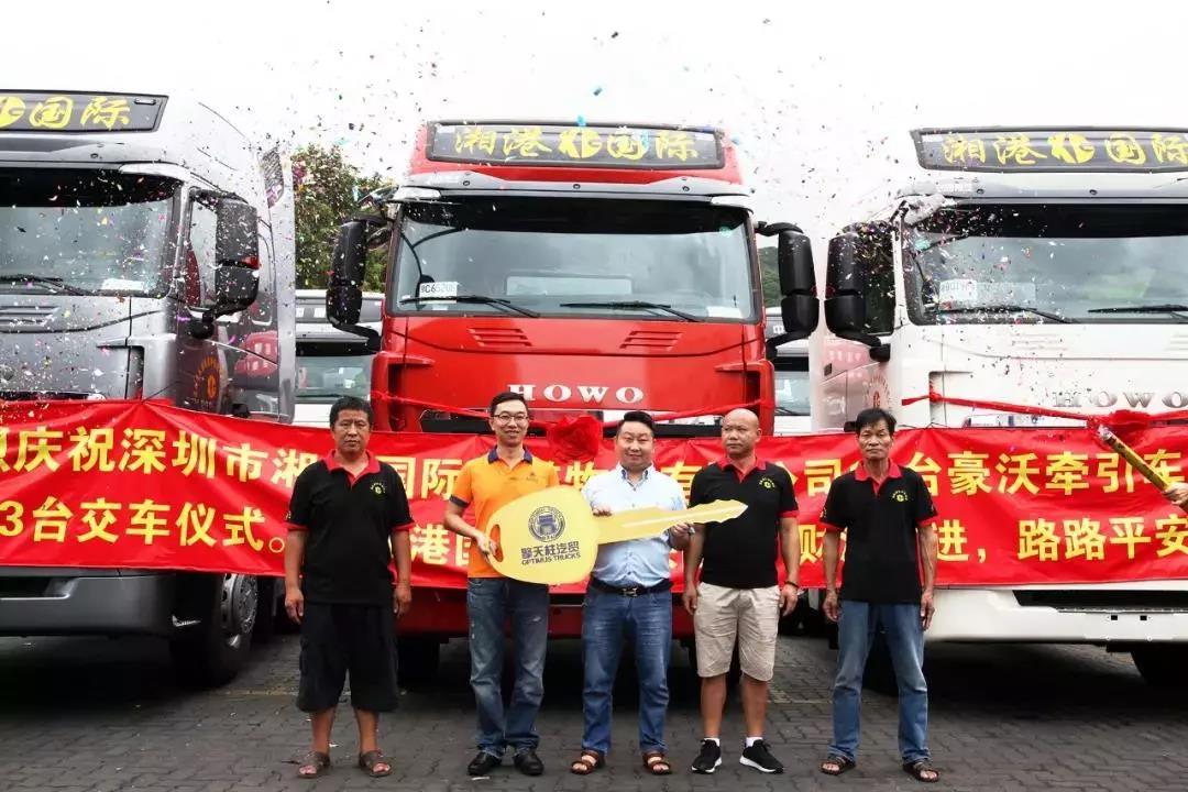 8月10日,销售部经销商擎天柱汽贸主办的用户新车交车仪式顺利举行,一排豪沃T7H身披寓意喜庆的大红花,在阳光中格外抢眼,尽显中国重汽豪沃英俊霸气外表,也寓意用户驾驶新车开工大吉。礼炮响起时,象征着“合作共赢”的金钥匙由擎天柱汽贸牵引车销售总经理鲁毅郑重交付深圳市湘港国际冷链运输有限公司王总手中,现场宾主一行共同携手见证这激动人心的时刻,!