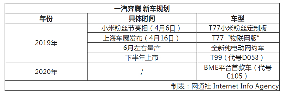包括全新旗舰SUV——T99(代号D058)、T77小米定制版以及BME平台首款车(代号C105)等。而天津一汽夏利牌轿车也已停产,为一汽集团旗下两品牌竞争让路。