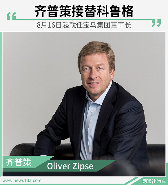 2019年7月19日,从宝马集团官方获悉,齐普策(Oliver Zipse)将接替科鲁格(Harald Krüger),于8月16日起就任宝马集团董事长一职。科鲁格在7月初向宝马集团监事会提出不再寻求连任,经双方同意,他将于8月15日辞去董事长职务并退出董事会。