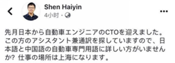 7月28日,奇点汽车CEO沈海寅在twitter发布,奇点将迎来一位日本重磅大咖加盟。