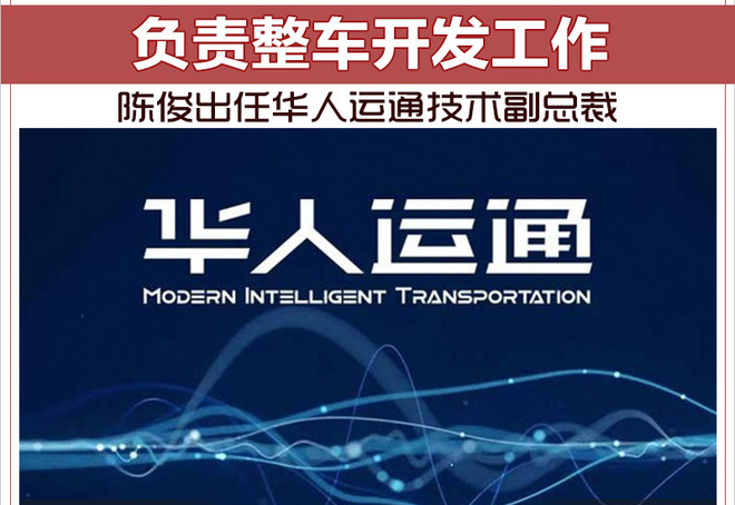 陈俊出任华人运通技术副总裁 负责整车开发工作