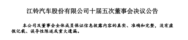 6月29日,江铃汽车股份有限公司发布十届五次董事会决议公告。公告显示,与会董事经过讨论,董事会选举王文涛先生为公司副董事长,选举熊春英女士为公司董事会战略委员会委员。