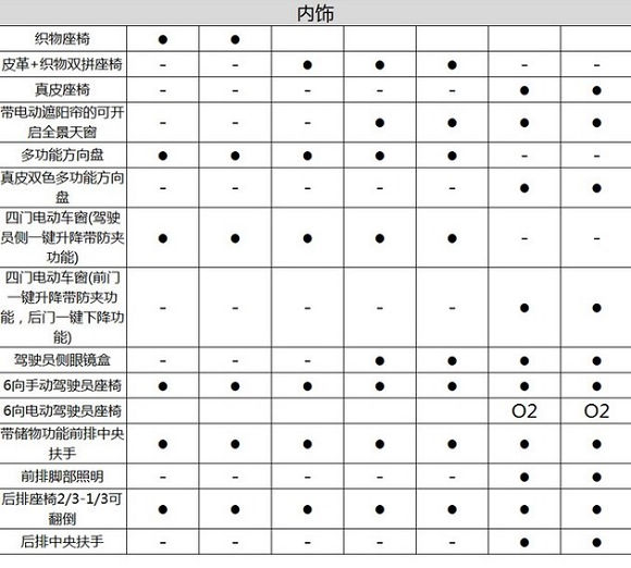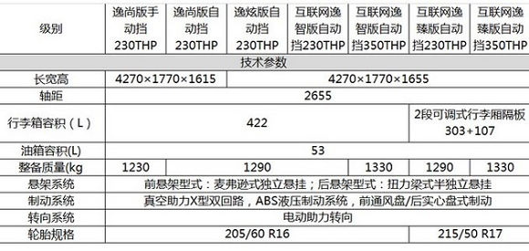 内部配置方面,新车标配织布座椅、后排座椅比例放倒以及多功能方向盘等,中配车型采用拼接座椅,互联网车型增配全景天窗,逸臻版车型还将增加后排中央扶手、前排氛围灯、驾驶员座椅电动调节、真皮座椅、双色多功能方向盘以及四车窗一键升降等功能。