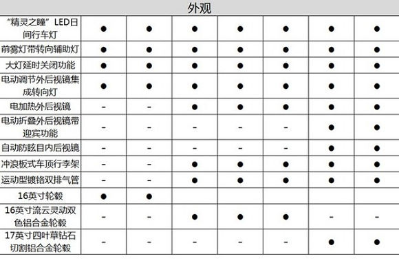 外部配置方面,新车将标配LED日行灯、转向辅助灯、大灯延时关闭以及外后视镜电动调节功能,中配车型增加外后视镜电加热、车顶行李架、双出排气功能,带迎宾功能的电动折叠外后视镜、内后视镜自动防炫目以及17英寸轮圈为高配逸臻版车型专享。