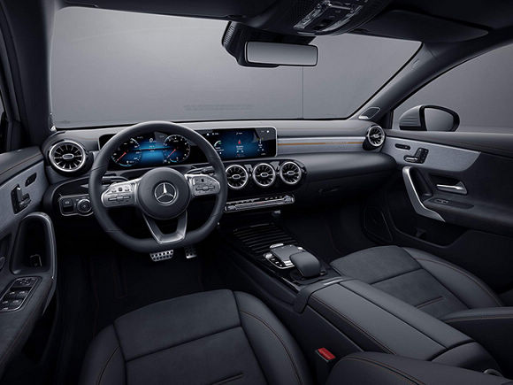 内饰部分,梅赛德斯-奔驰全新A级特别版采用与自家迈巴赫车型相同的豪华设计,配备双10.25英寸大屏,三辐多功能运动方向盘以及Command