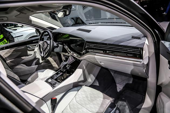 内饰方面,全新途锐的内饰采用与大众最新的家族设计,中控主体向驾驶员一侧倾斜。其数字驾驶舱Innovision