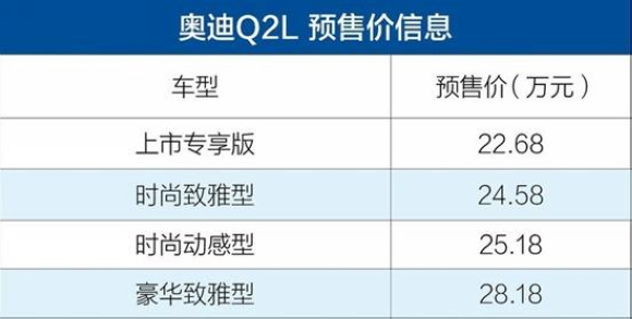 奥迪Q2L将于10月13日上市 预售22.68万元起