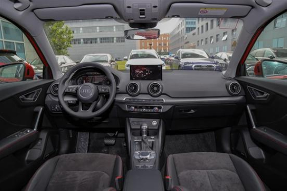 Q2L的内饰设计并没有采用与Q5或新一代Q3相似的设计,而是采用与现款奥迪A3的风格,比较简洁,中控台上方为可升降的悬浮式液晶屏,四个圆形的出风口和圆球状的挡把相呼应,与年轻的外观设计比较合拍。