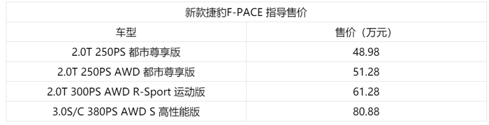 售48.98-80.88万元 新款捷豹F-PACE上市