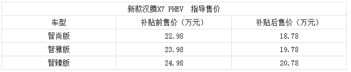 补贴后18.78万起 新款汉腾X7 PHEV上市