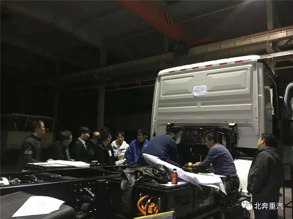 经过前期的艰辛努力和精心筹备,10月8日,北奔重汽首台新能源样车在产品验证中心正式进行实车装配。项目组现场进行问题记录,对装配过程中出现的问题迅速研究解决。经过12个日夜的连续奋战,10月20日晚,首台样车所有部件装配完成,随即开展样车整改及调试工作。11月1日至4日,项目组与多家供应商经过四天四夜的联合调试,北奔重汽首台新能源样车顺利启动下线,现已开始整车试验。后续,北奔重汽将在首台样车的基础上,关注用户特定用途,开发满足市场需求的智能电动卡车产品,并进一步拓展混合动力产品,满足干线物流运输的市场需求。