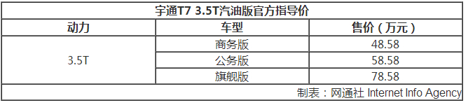 V8自然吸气发动机。网通社从宇通客车官方获悉,宇通T7小排量汽油版车型正式上市,共推出3款车型,售价区间48.58-78.58万元。新车前脸横幅式格栅配以矩形大灯及下方日间行车灯,时尚大气。动力方面,这款车将搭载3.5T汽油发动机。