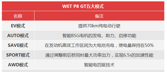 动力方面由2.0T汽油机和电动机组成,代号为GW4C20A的2.0L涡轮增压发动机最大功率为224马力,匹配7速双离合变速箱,锂离子电池由宁德时代新能源科技股份有限公司提供,纯电模式下续航里程70公里;