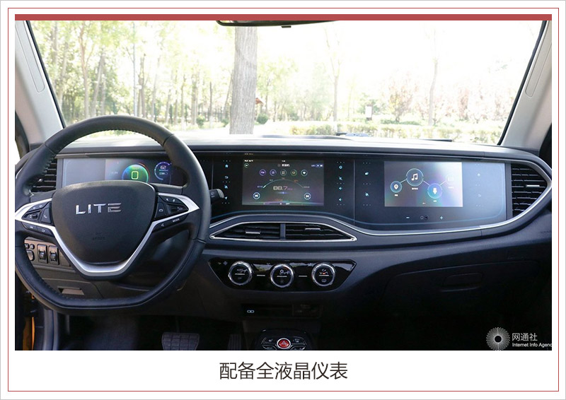 内饰方面,北汽新能源LITE配备全液晶仪表,另外在中控台以及副驾驶座前方均带有多媒体液晶屏幕。新款LITE还以可用手机App远程查看整车状态,在功能上还配备了“半自动泊车”、“车道偏离预警”等配置,并支持百度CarLife手机互联及智能语音识别等功能。