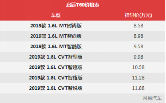 启辰T60广州车展正式上市 售价8.58万起