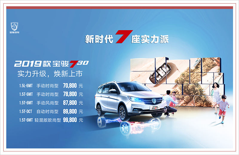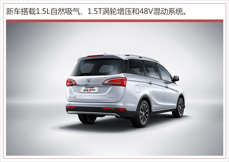 730是宝骏旗下MPV,目前在售产品搭载1.5L和1.5T发动机。网通社从宝骏官方获悉,2019款宝骏730今日正式上市。新车共推出了5款车型,售价区间为7.08万元—9.98万元。新车在外观和内饰方面都进行了调整,此外,还推出了48V混动车型。
