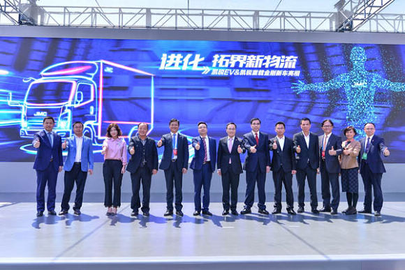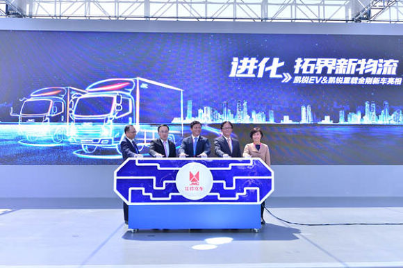 此次北京车展上,江铃轻卡的进化与拓界之路分两步进行了诠释,第一步是进入以往江铃未涉足的大重载轻卡市场,第二步是进入代表未来轻卡发展方向的纯电动轻卡市场。