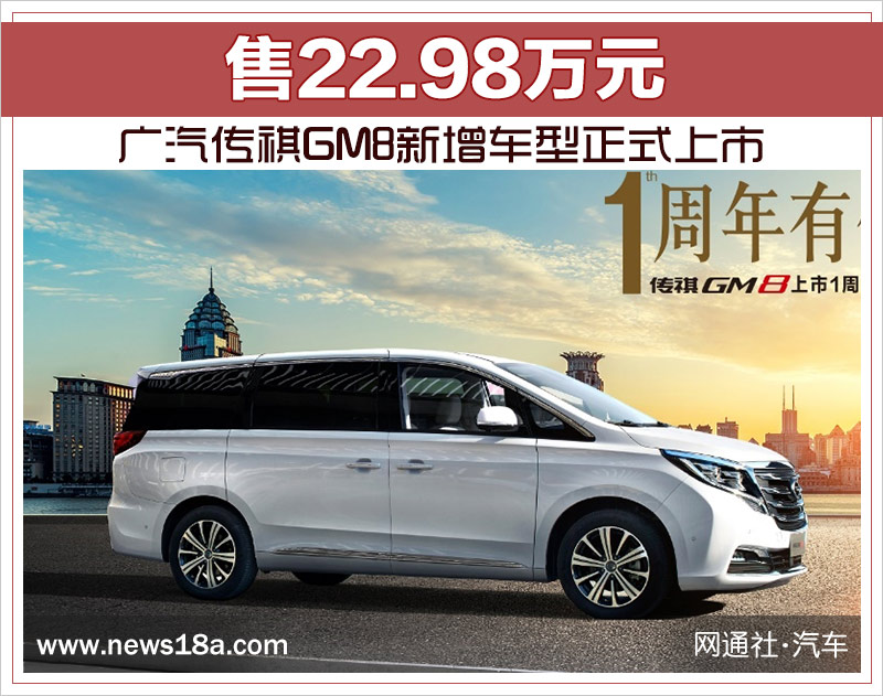 GM8是广汽传祺首款MPV。广汽传祺GM8新增车型正式上市,新车命名为至尊版,售22.98万元。作为新增车型,其并未在外观以及内饰方面进行过多的调整,其主要是进一步丰富其配置。例如主驾驶气动腰靠、无线充电等。