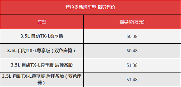 我们从一汽丰田获悉,普拉多新增尊享版车型,不同配置车型的售价区间为50.38-51.48万元。