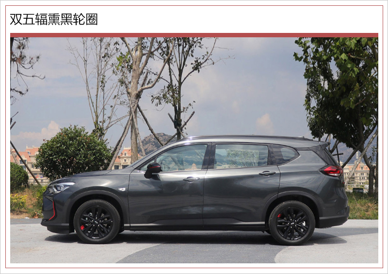 该车侧面线条具有立体感,侧窗周围及侧裙处均加入黑色饰条点缀,配以双五辐熏黑轮圈,极具运动风格。5座版车型尾部线条平直,尾厢中间外凸的设计与两侧LED尾灯相连,视觉效果醒目;尾窗周围采用熏黑处理,结合上方大尺寸扰流板,十分运动。此外,这款SUV黑色保险杠底部带有三个反光板,隐藏式排气设计更为内敛。