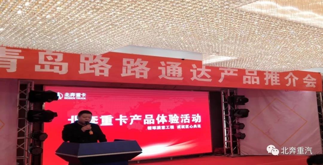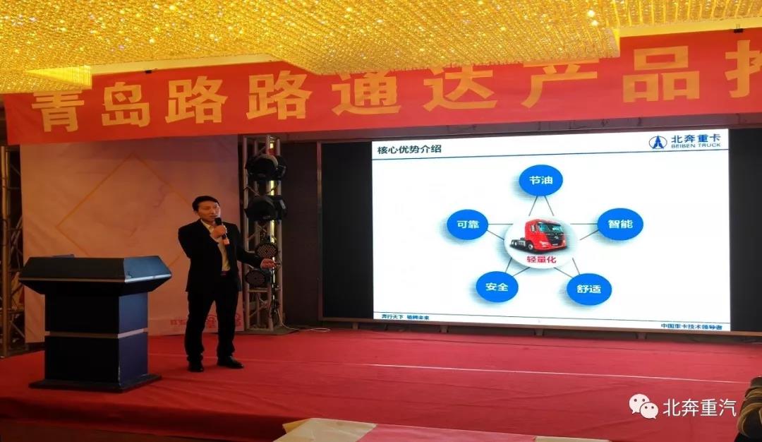 会议开始,由王福军致词,首先感谢各大物流公司朋友对于青岛路路通达的支持及对北奔重卡产品的信任。其次,北奔重卡“高颜值、高性能、低油耗、低价格”的V3ET精英版的上市,积极相应“打好蓝天保卫战、淘汰国三车”政策要求,对于后续港口、散货运输客户更换车辆下了一场及时雨。路路通达以北奔重卡新产品为导向,以标准化、平台化、精细化的服务,得到各路卡友对于路路通达及北奔重卡产品的认可!