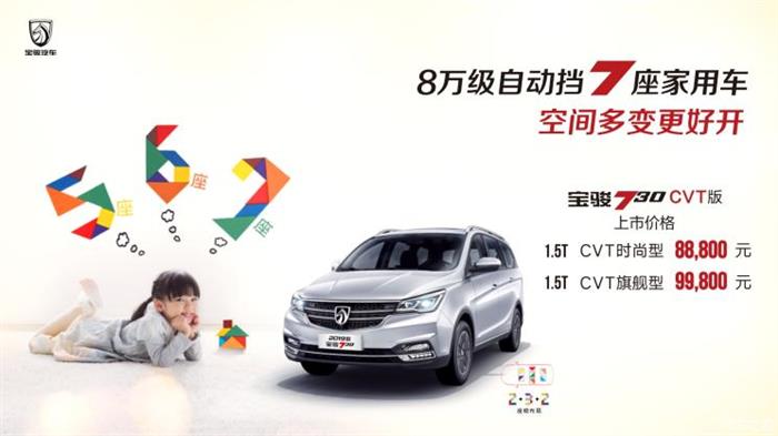 售8.88-9.98万元 宝骏730 CVT车型上市