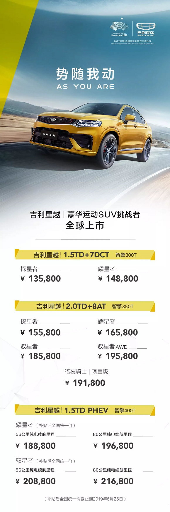 吉利星越全球上市售价13.58万元-21.68万元 |