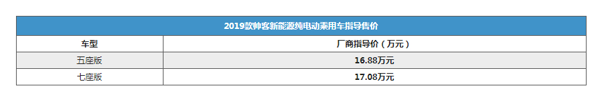 日前,我们从郑州日产官方获悉,旗下2019款帅客纯电动乘用车正式上市,新车定位于MPV车型,分为5座版与7座版,厂商指导价分别为16.88万与17.08万元。